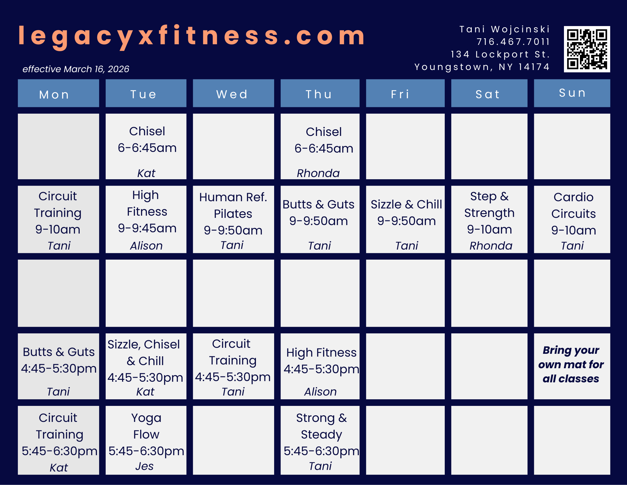 I cannot wait to work with you at Legacy X Fitness! Woman, wife, and mother of 4, I try to bring my love for music, movement, and mindfulness into everything I do. I know life gets chaotic, so I find wherever I can to ground and reconnect. I love being a part of my community. We are all family, friends and neighbors.